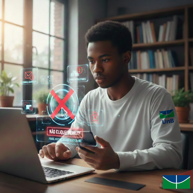 Ao navegar na Internet é essencial proteger nossas informações pessoais, e é muito comum receber mensagens tentadoras por e-mail ou redes sociais. Muitos golpes começam nestes ambientes, é uma responsabilidade contínua e exige atenção constante para garantir sua proteção. Antes de clicar em qualquer link, seguem algumas orientações de segurança:
